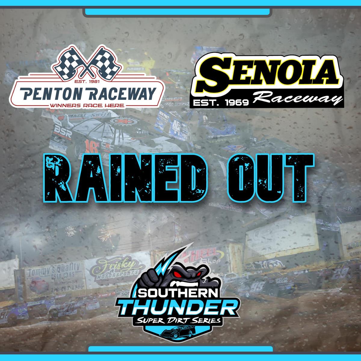 WOODRUFF, SC (May 8th, 2025) – Citing saturated grounds and weather forecasts predicting a high percentage of rain, officials with the Southern Thunder™ Super Dirt Series (STSDS) have announced the postponement of scheduled events at Penton (Ala.) Raceway and Senoia (Ga.) Raceway. With track conditions and safety being a top priority, the decision was made with the best interest of fans and drivers in mind.